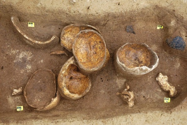 Jamy nezasypali zeminou ani bežným sídliskovým odpadom: spočinuli v nej črepy kvalitnej, nezriedka z ďaleka pochádzajúcej keramiky, taktiež rozlámané nástroje, vrátane kamenných žarnovov na drvenie zrna. A tisíce a tisíce rozkúskovaných kostí zvierat aj ľudí.