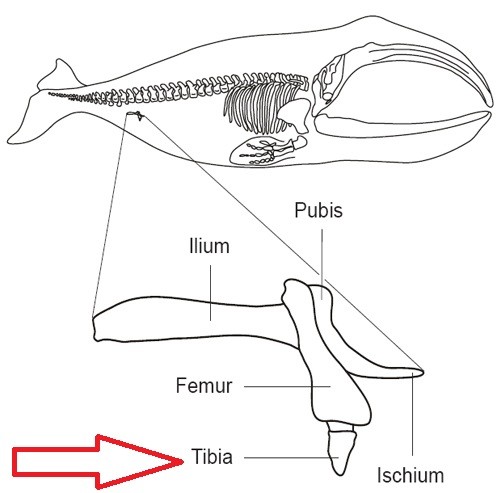 Ale iba navonok. Mnohé veľryby nesú v tele ich zvyšky, predovšetkým stehennú kosť. U veľryby južnej a veľryby biskajskej nájdeš dokonca (chrupkovitú) holennú kosť!